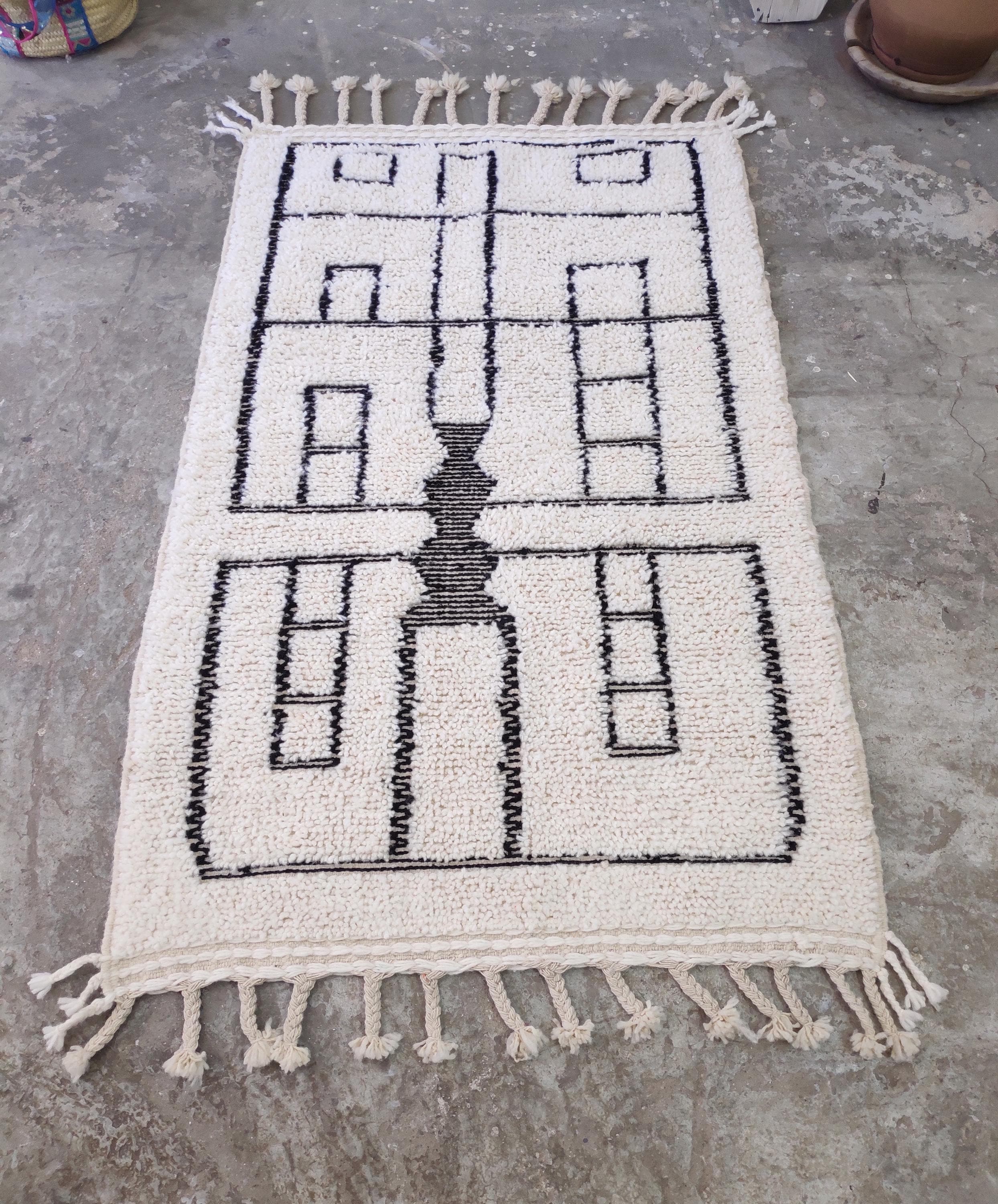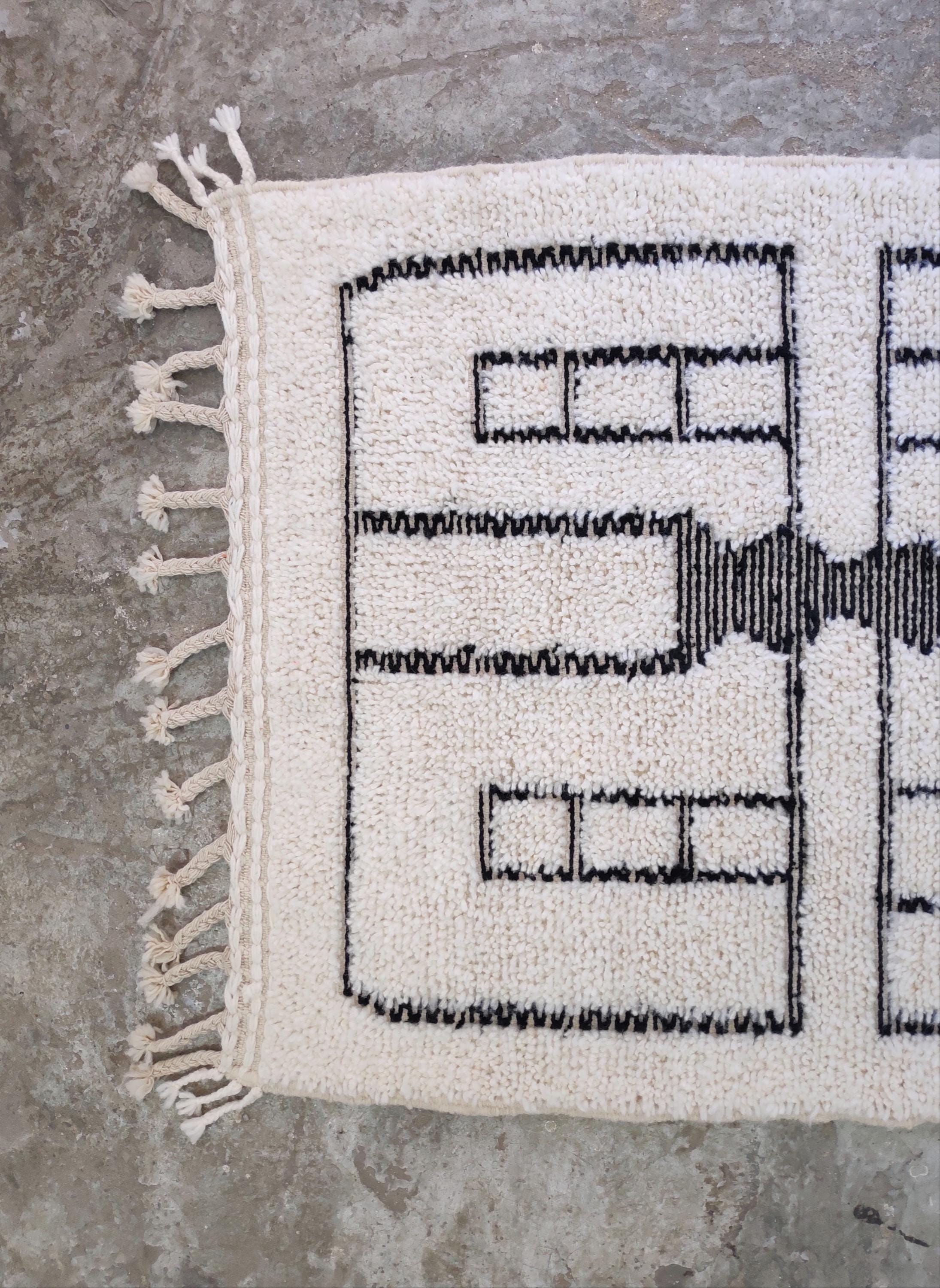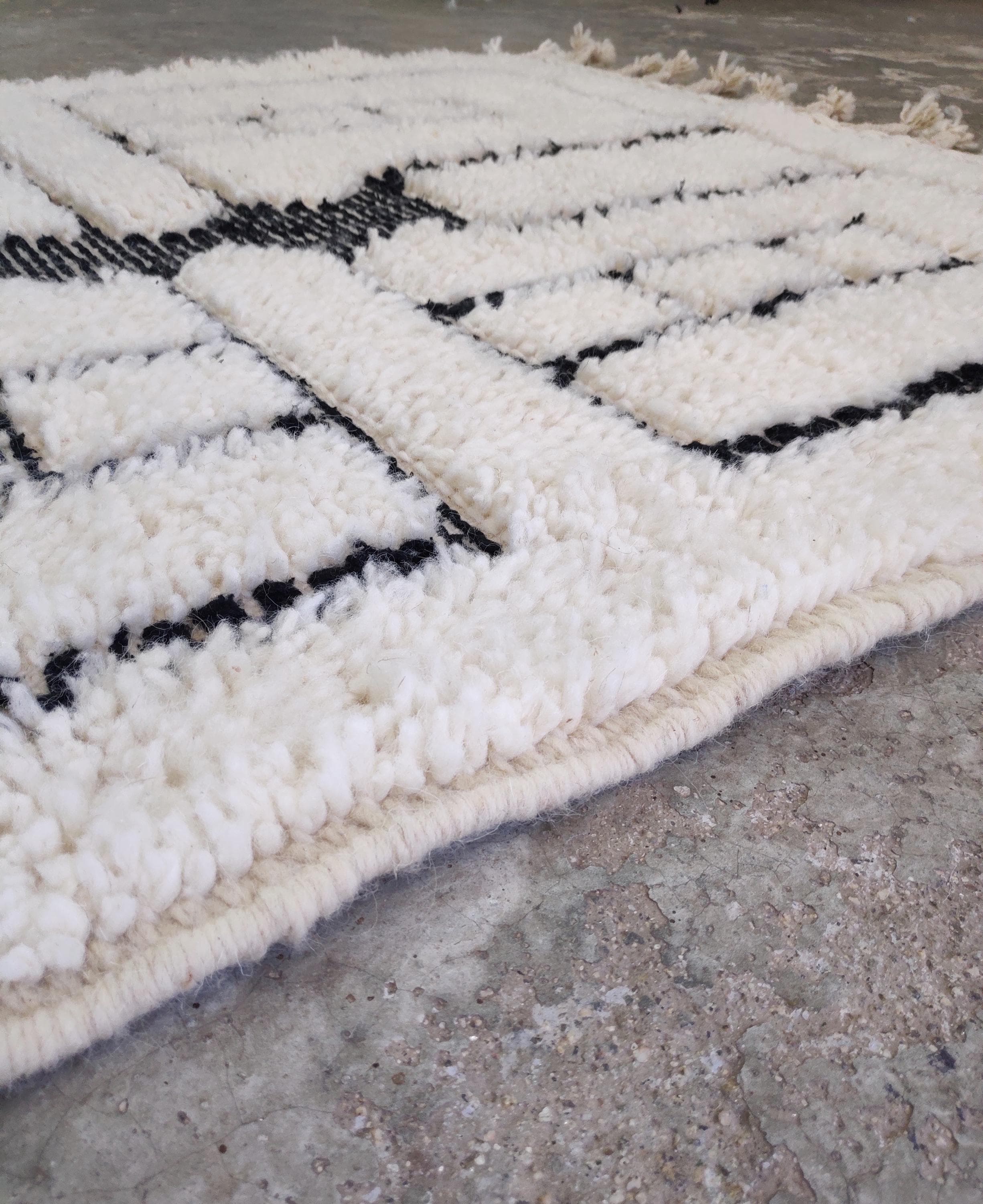 This exquisite traditional Moroccan rug from Boujad is 100% handmade. Beni Ourain rugs from a small family in the Middle Atlas Mountains in the Taza region. A small group called Beni Ourain, they are known for their wonderful idea of wool sheep, which makes their rugs move using