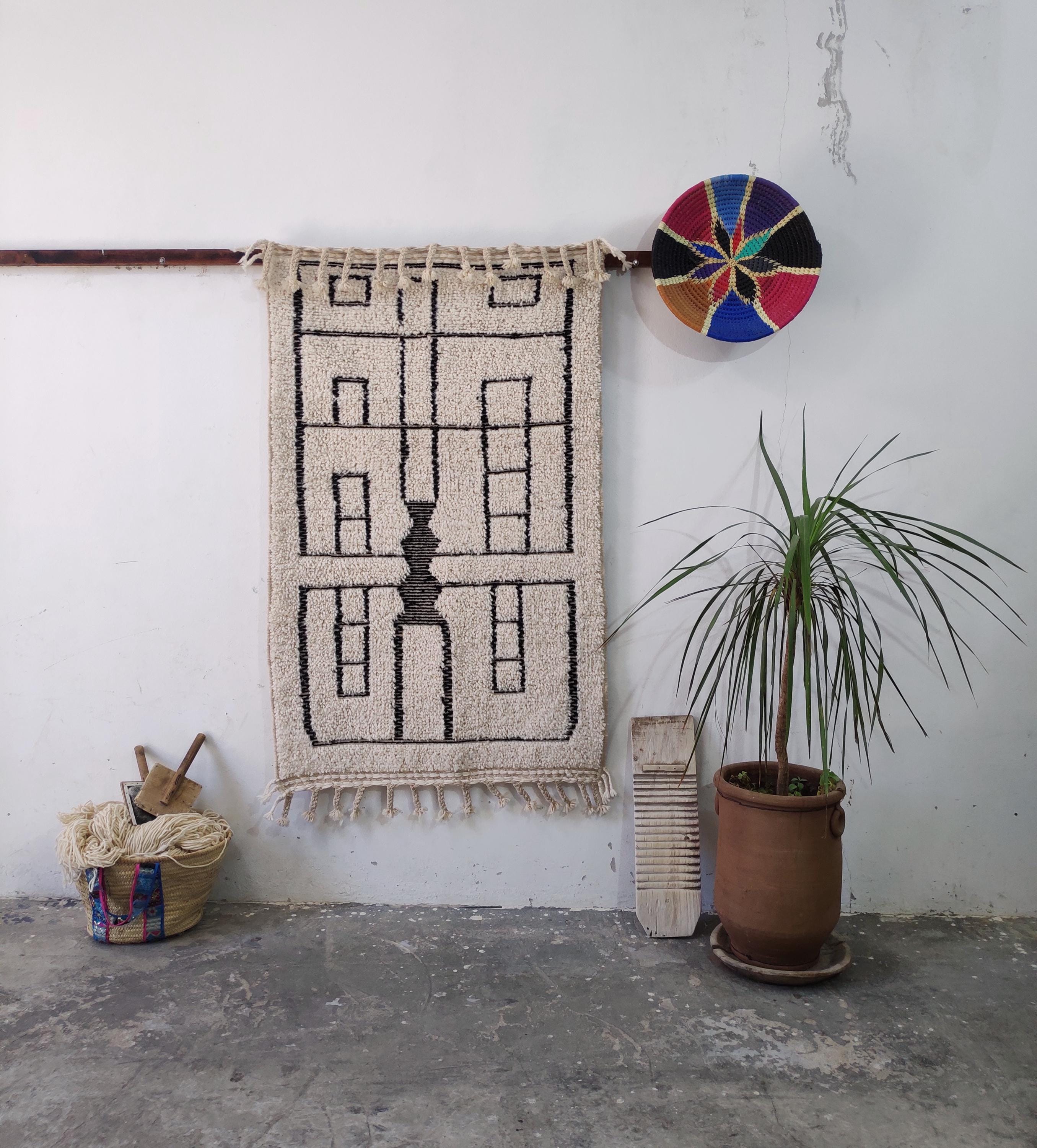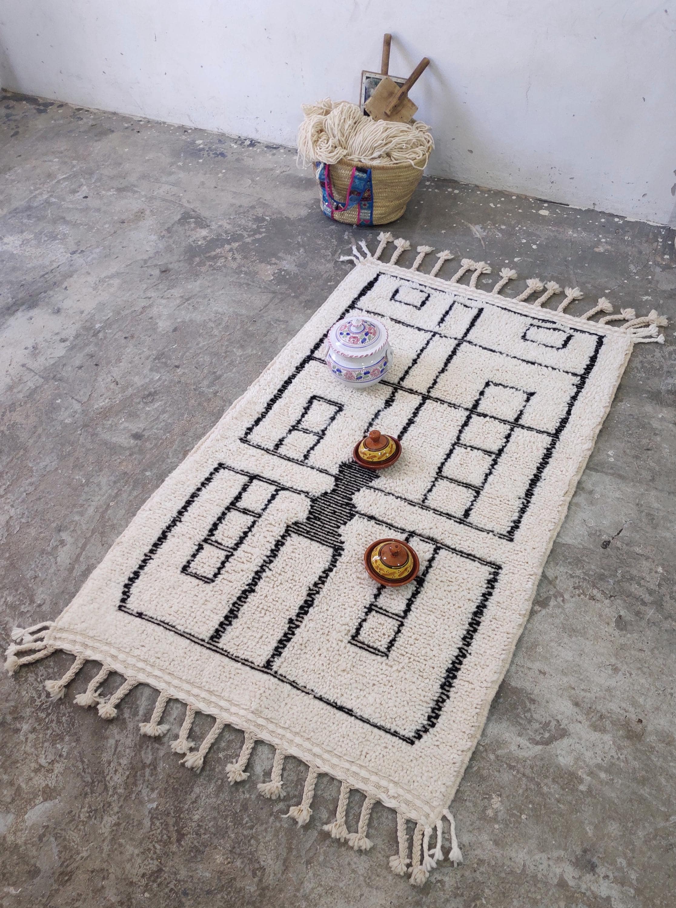 Elevate your living space with the charm and character of this handcrafted Berber wool rug from Beni Ourain – a testament to the enduring beauty of traditional craftsmanship and the vibrant spirit of Berber design DETAILS: