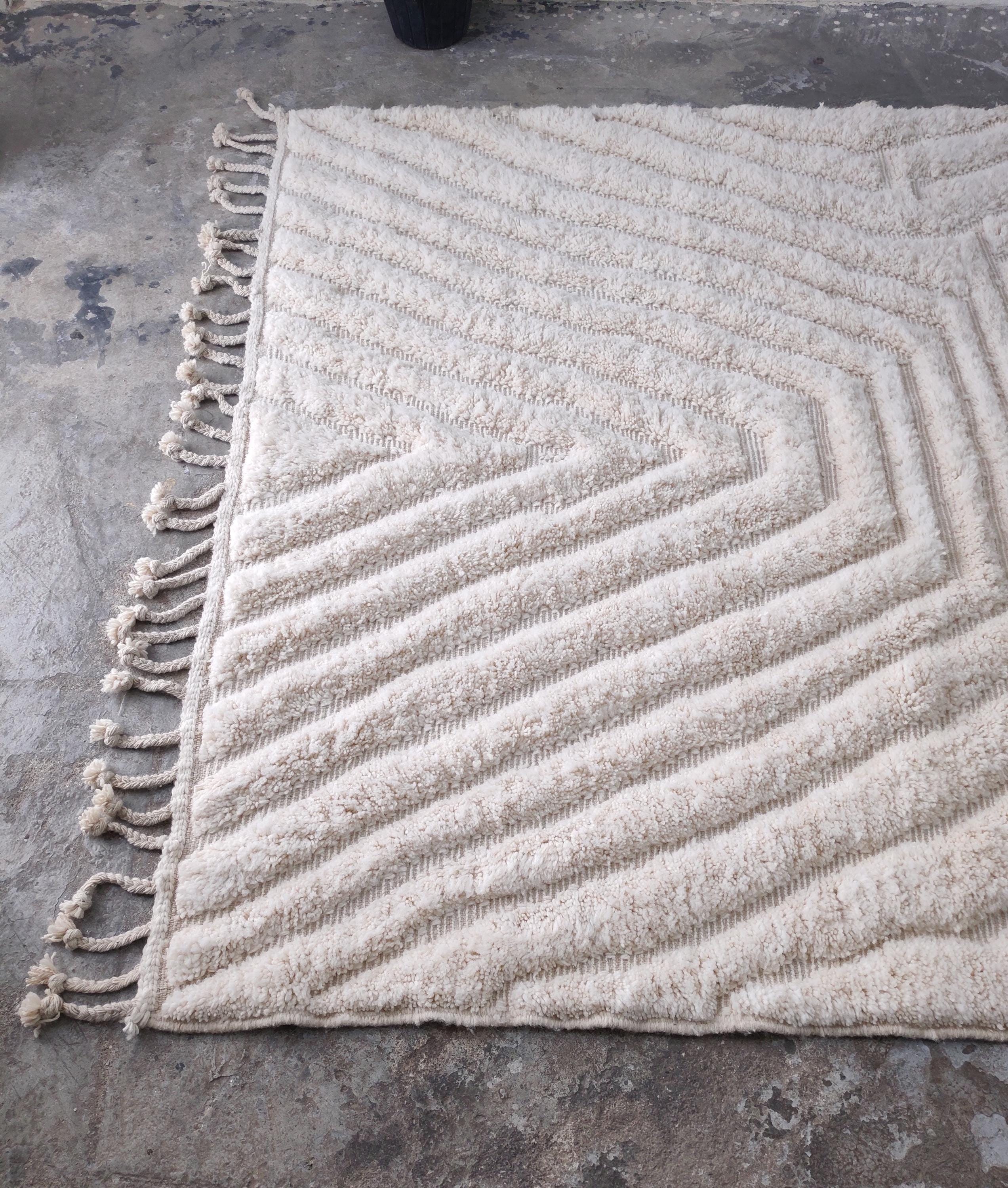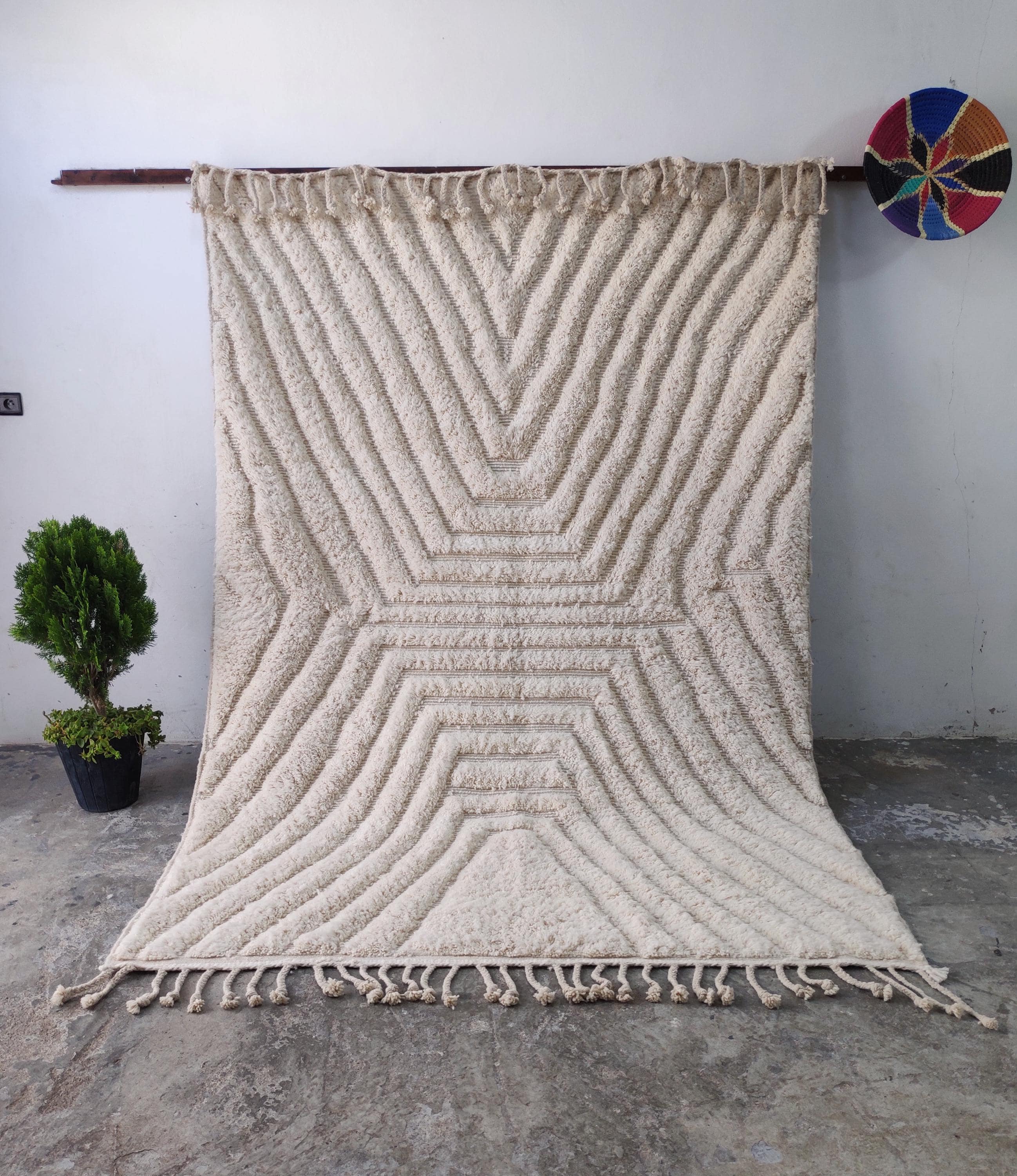 .Luxuriously Soft Handwoven White Beni Ourain Rug for Ultimate Comfort Underfoot.